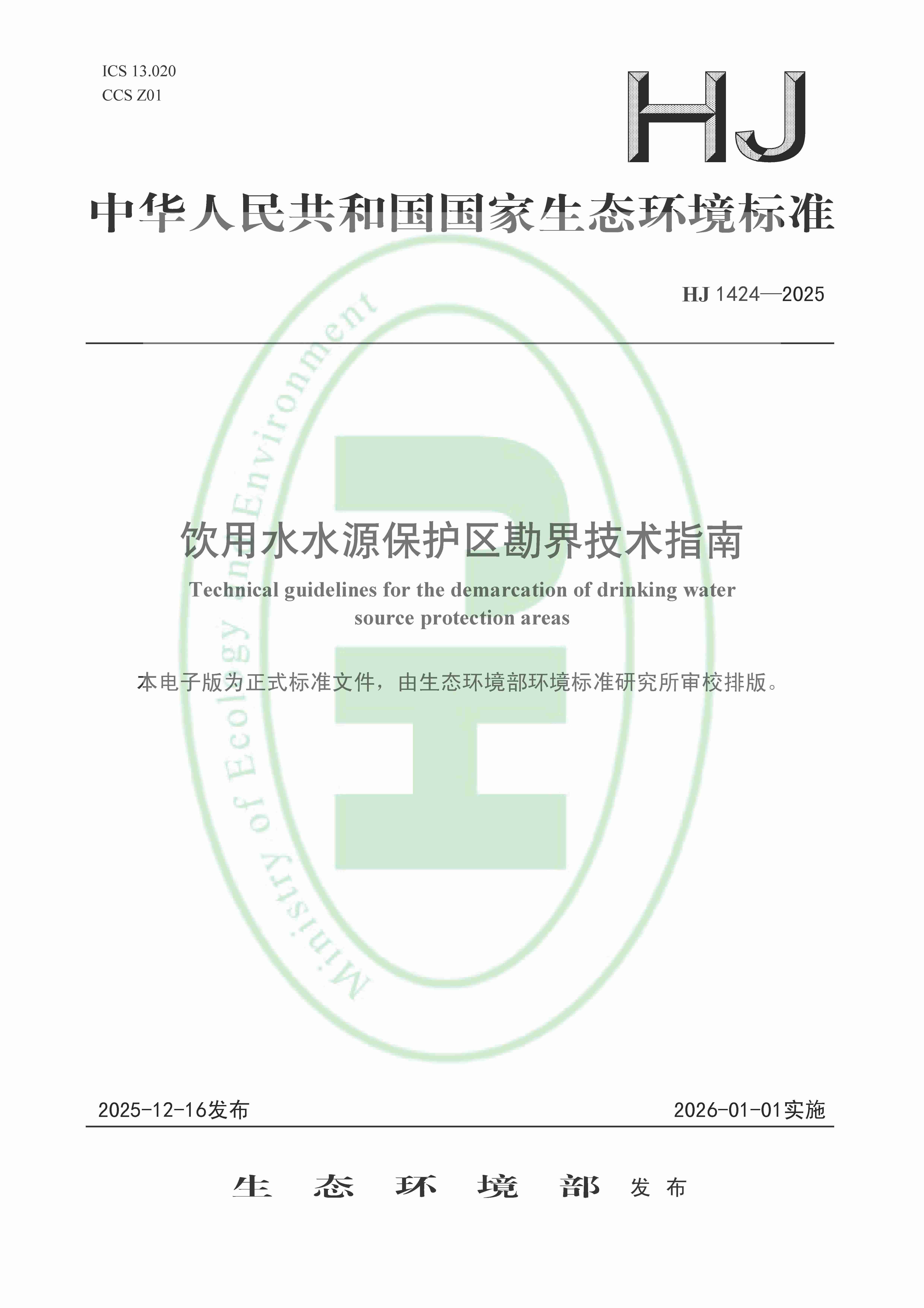 饮用水水源保护区勘界技术 HJ 1424—2025 指南