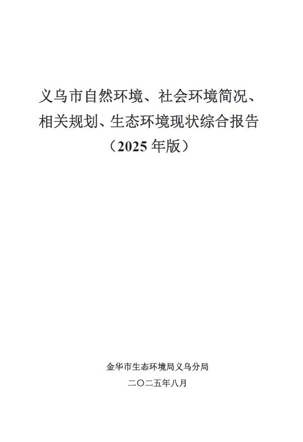 关于发布《义乌市自然环境、社会环境简况、相关规划、生态环境现状综合报告(2025年版)》的公示