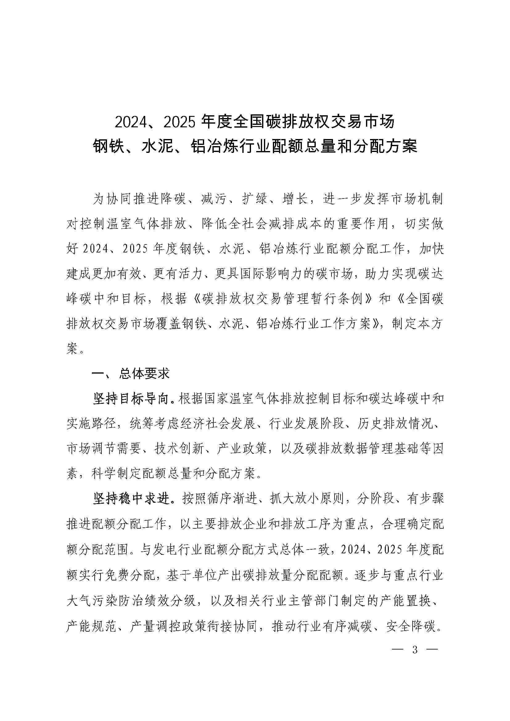 关于印发《2024、2025年度全国碳排放权交易市场钢铁、水泥、铝冶炼行业配额总量和分配方案》的通知