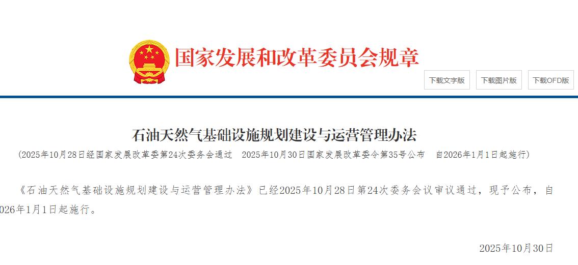 石油天然气基础设施规划建设与运营管理办法
